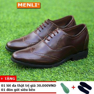 Giày nam tăng chiều cao 7cm buộc dây màu nâu chính hãng MENLI CS20