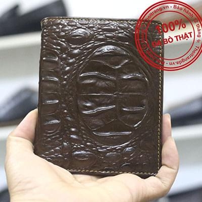 Ví da bò dập vân cá sấu V10 (Nâu)