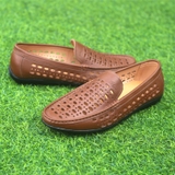 Giày Lười Nam Da Bò Chính Hãng MENLI GL93 Màu Nâu Đục Lỗ Thoáng Khí