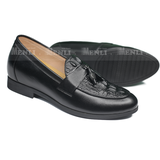 Giày tăng chiều cao nam 6.5cm, giày đế cao, giày cao nam da bò thật MENLI TC22 dập vân cá sấu sành có chuông sành điệu